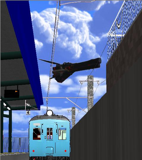 空には宇宙戦艦が浮いています